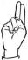 На ћирилици написано АНДРИЈАНА КЛИНЦОВ састоји се из 16 слова [?]. Исписано ћириличном једноручном азбуком за глувонеме: